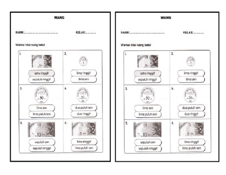 Ejercicio De Wang Kertas Mengenal Nilai Wang