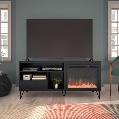 Manhattan Comfort Nolita Mid-CenturyModern TV. Combine functionality and on-trend transitional mid-century design with this modern TV stand featuring an inset electric fireplace. Good quality and straight forward assembly.
